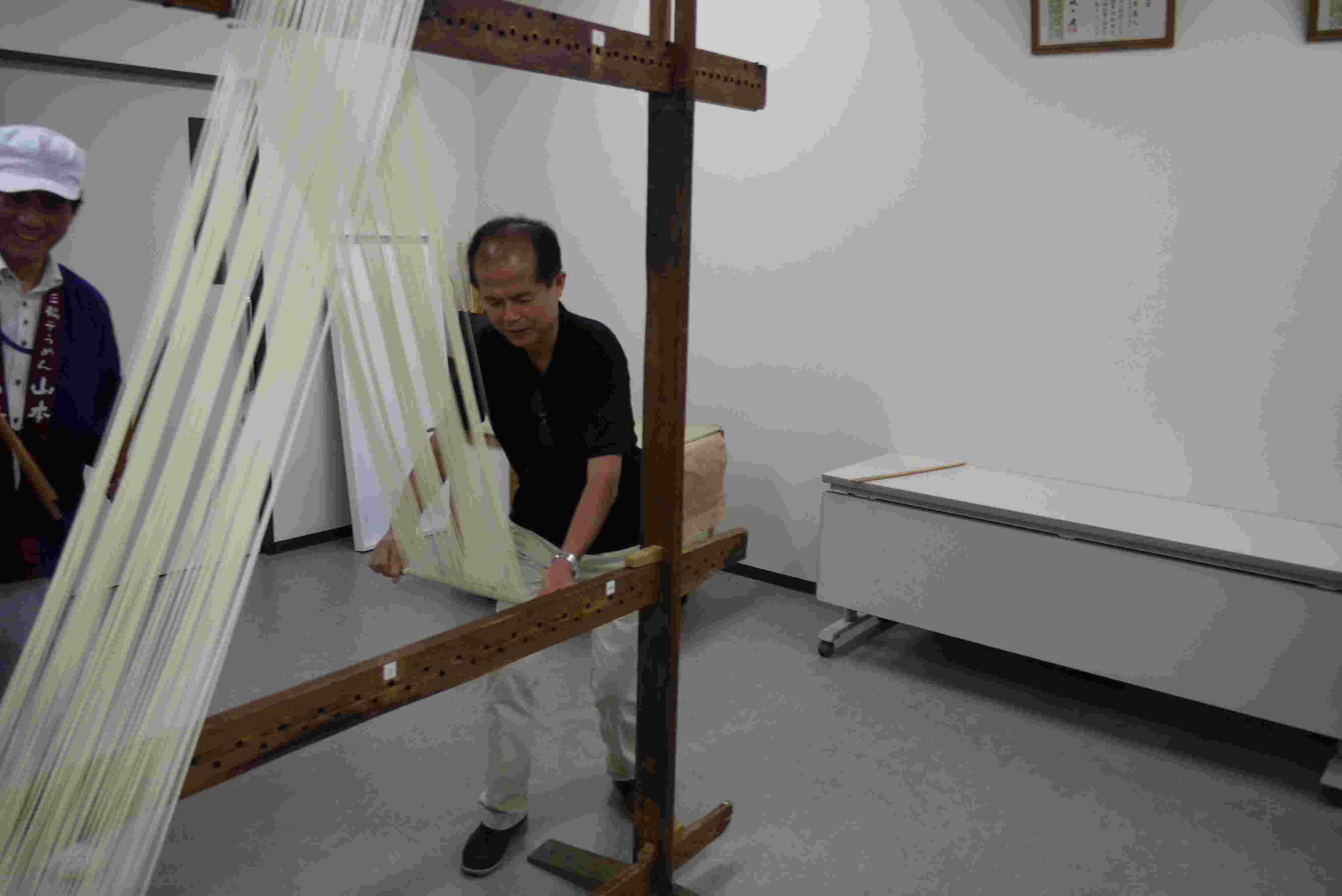 第三工程は竹の箸を使った麺をわけます。