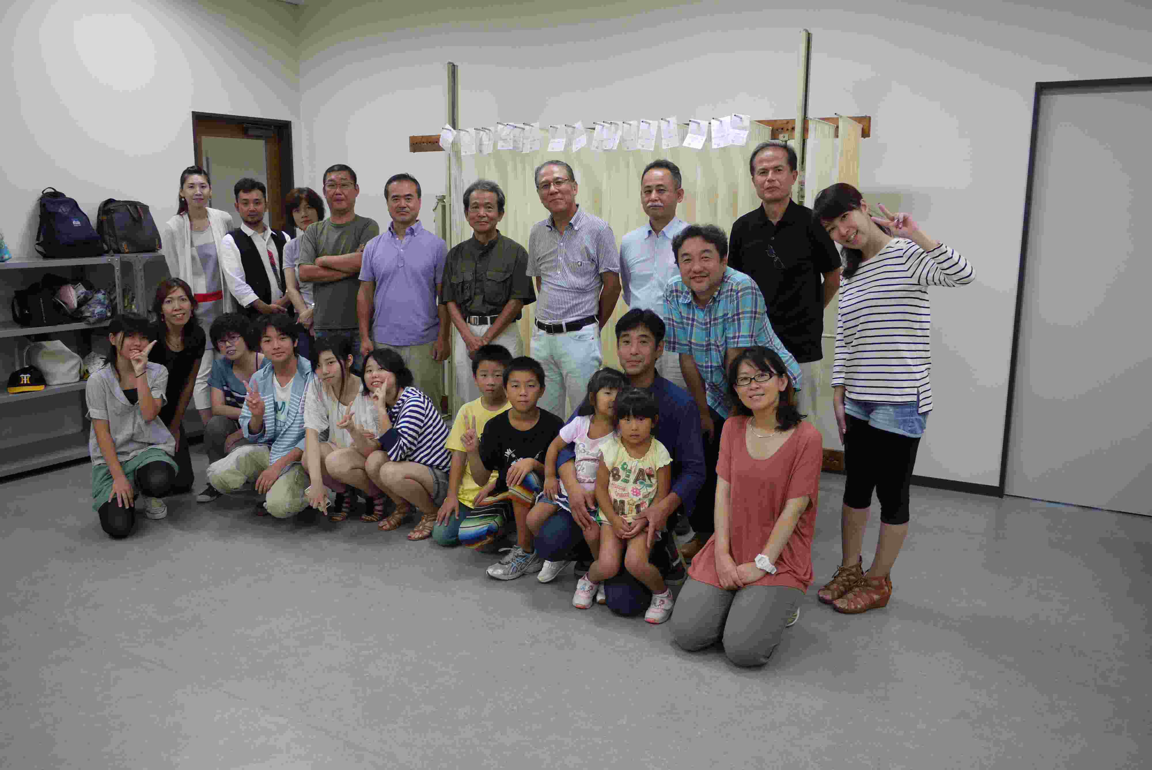 延ばしたそうめんの前で記念写真