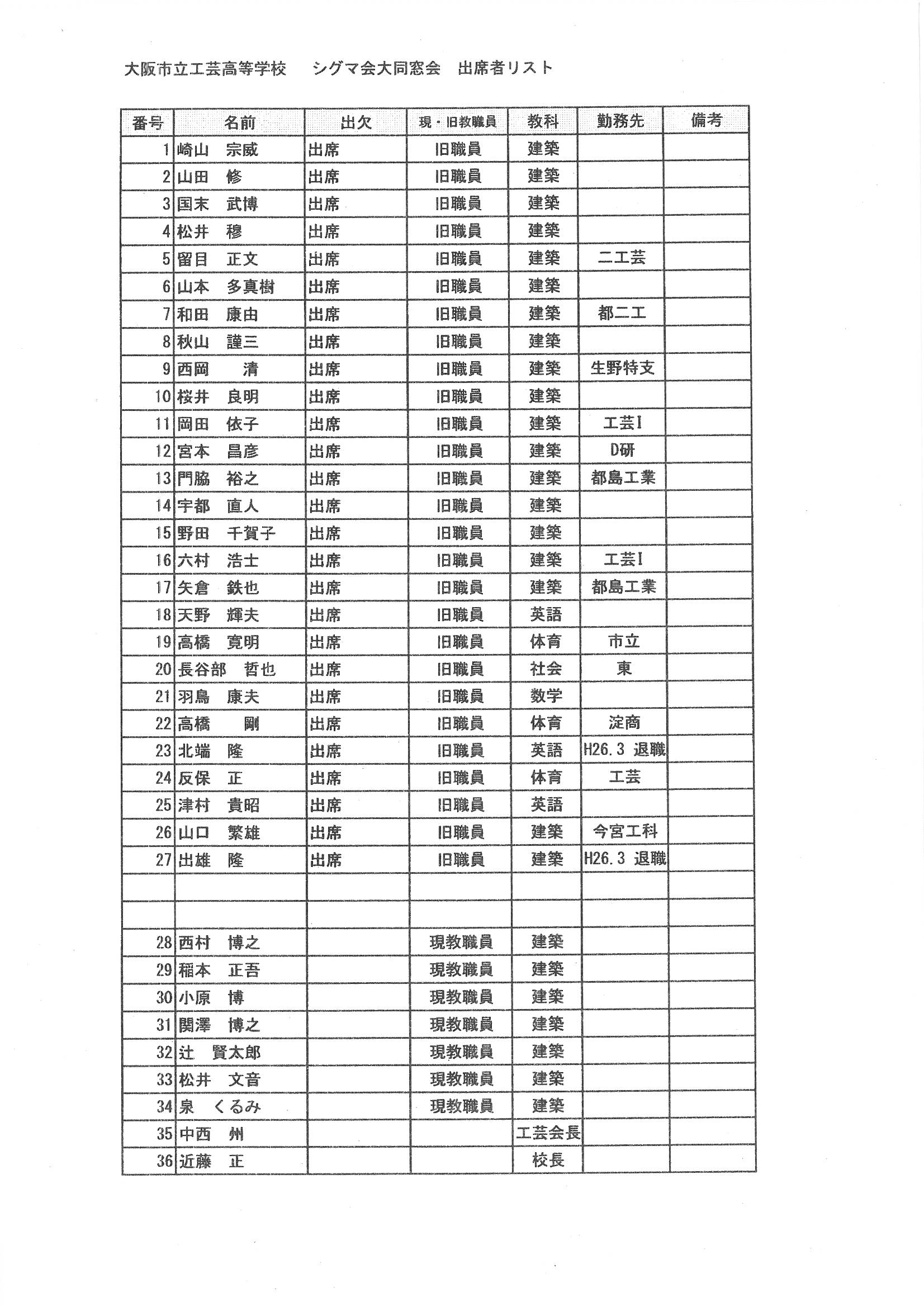 創設以来、工芸高校またシグマ会に、ご支援ご指導を頂いた先生方をご招待申し上げ、卒業生一同と旧交を暖め合いたいと思っております。