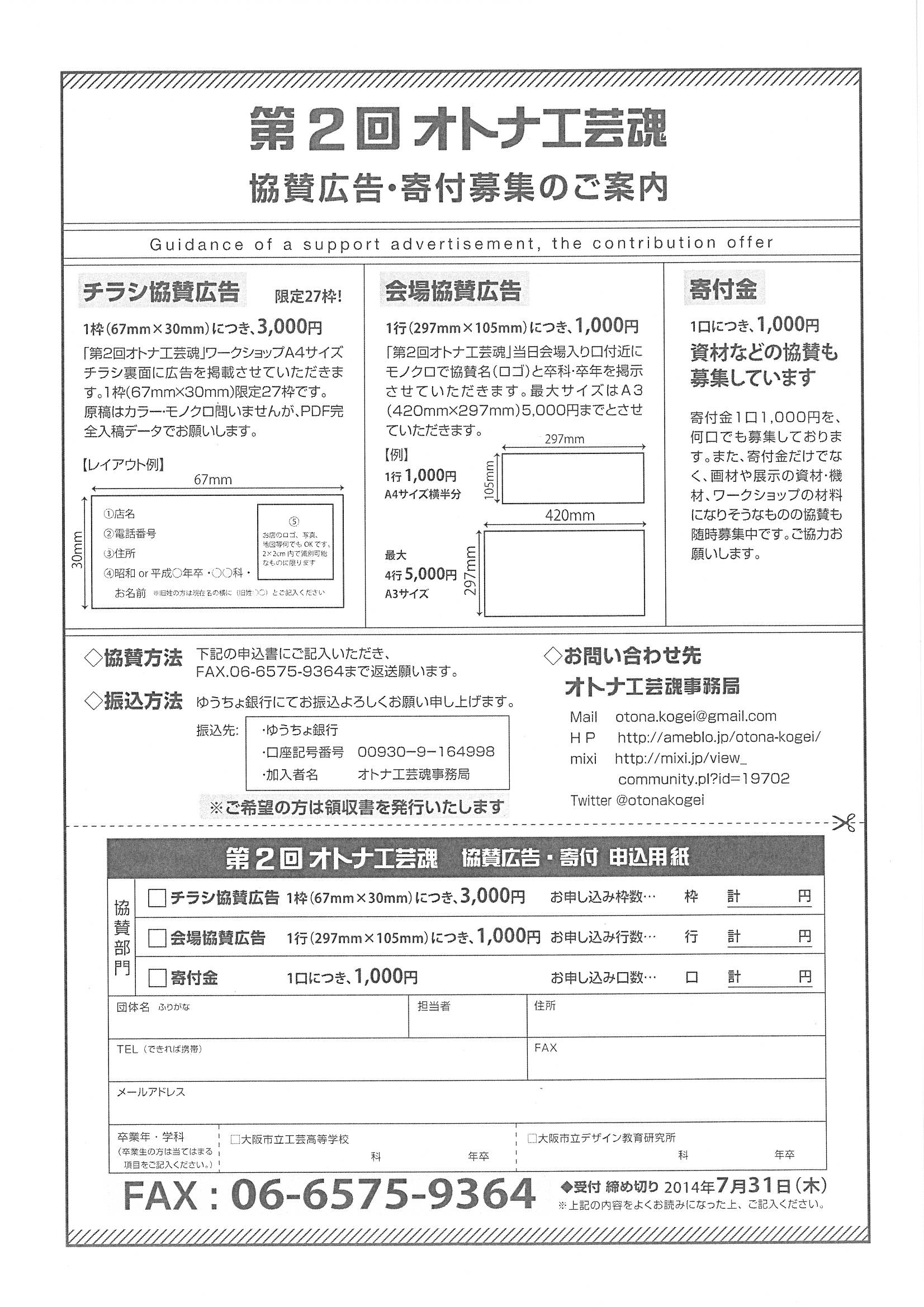 第2回オトナ工芸魂のお知らせと募金・協賛広告のお願い