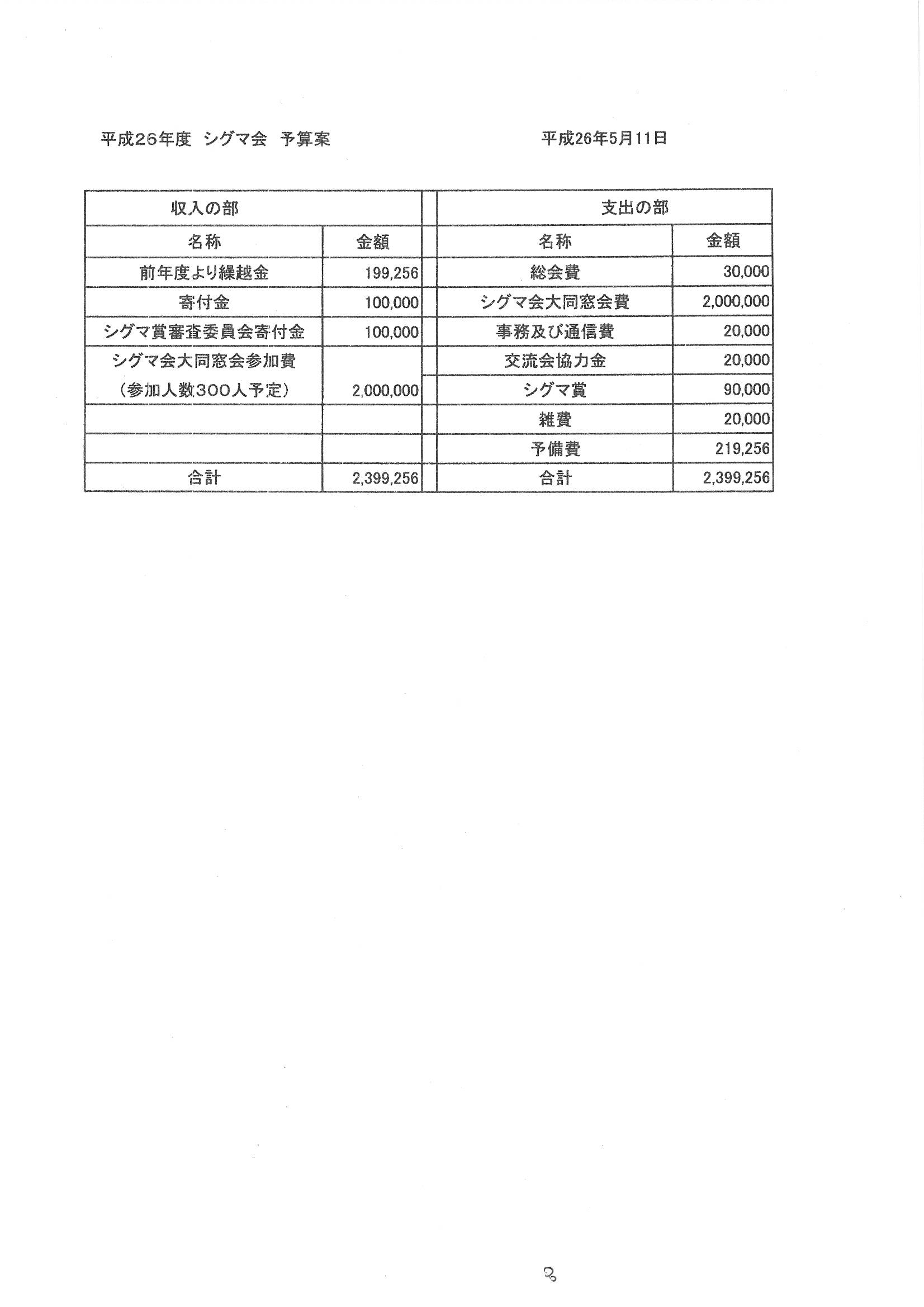 平成26年度 シグマ会総会 議事録抜粋