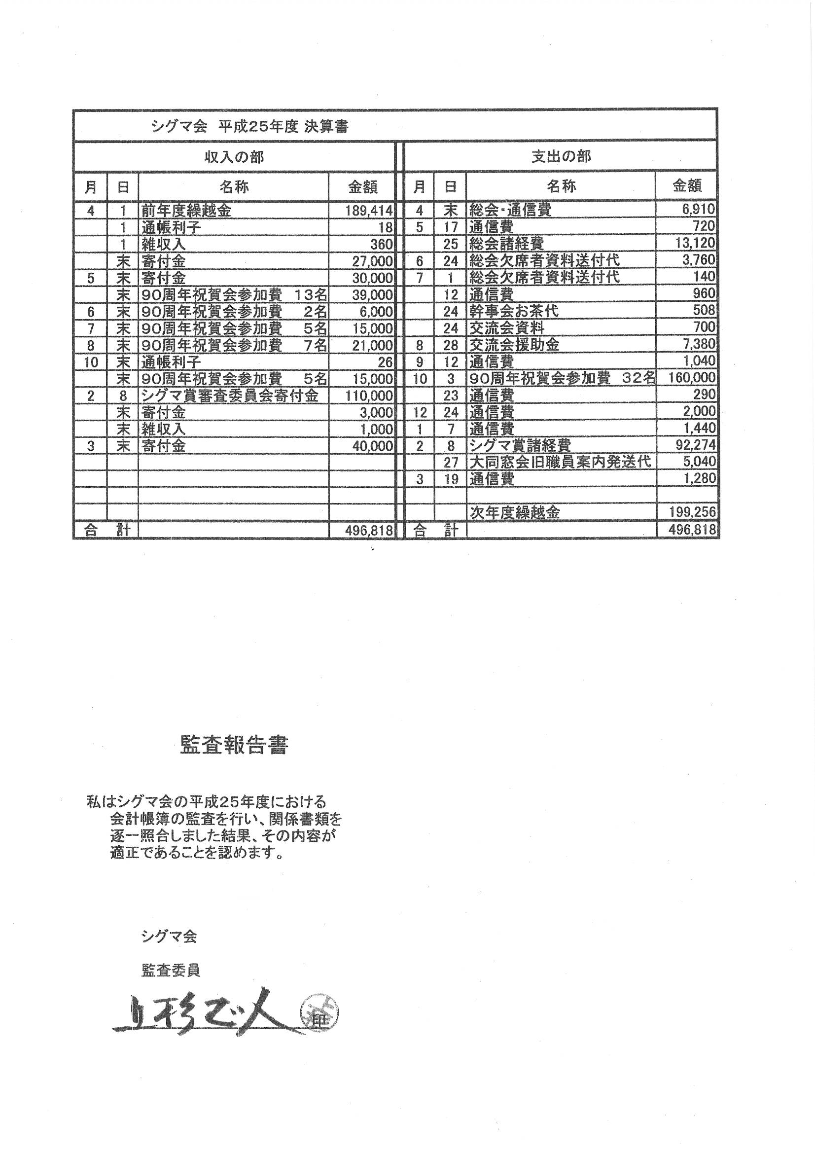 平成25度会計報告