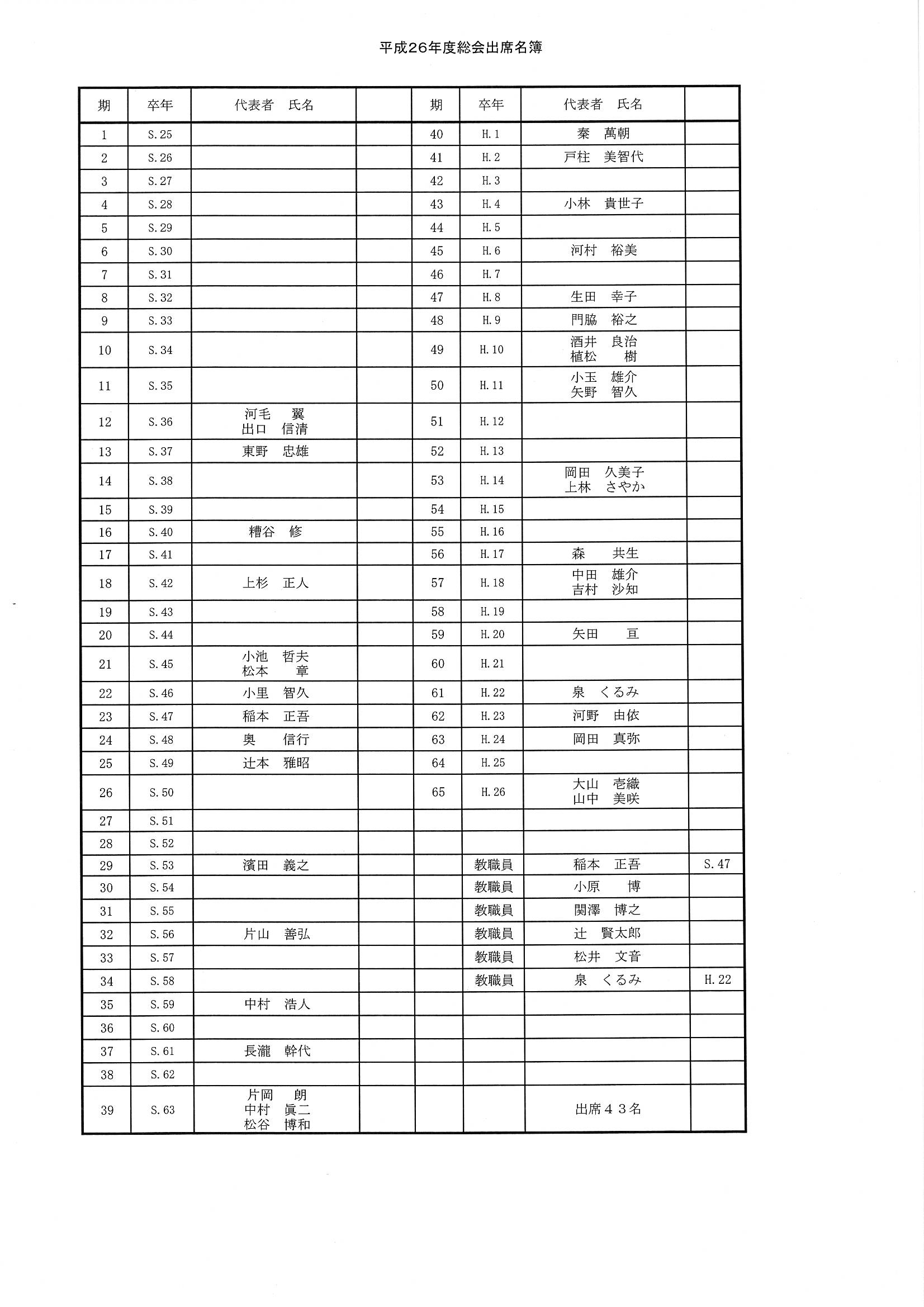 小原博、辻賢太郎、松井文音 以上43名出席